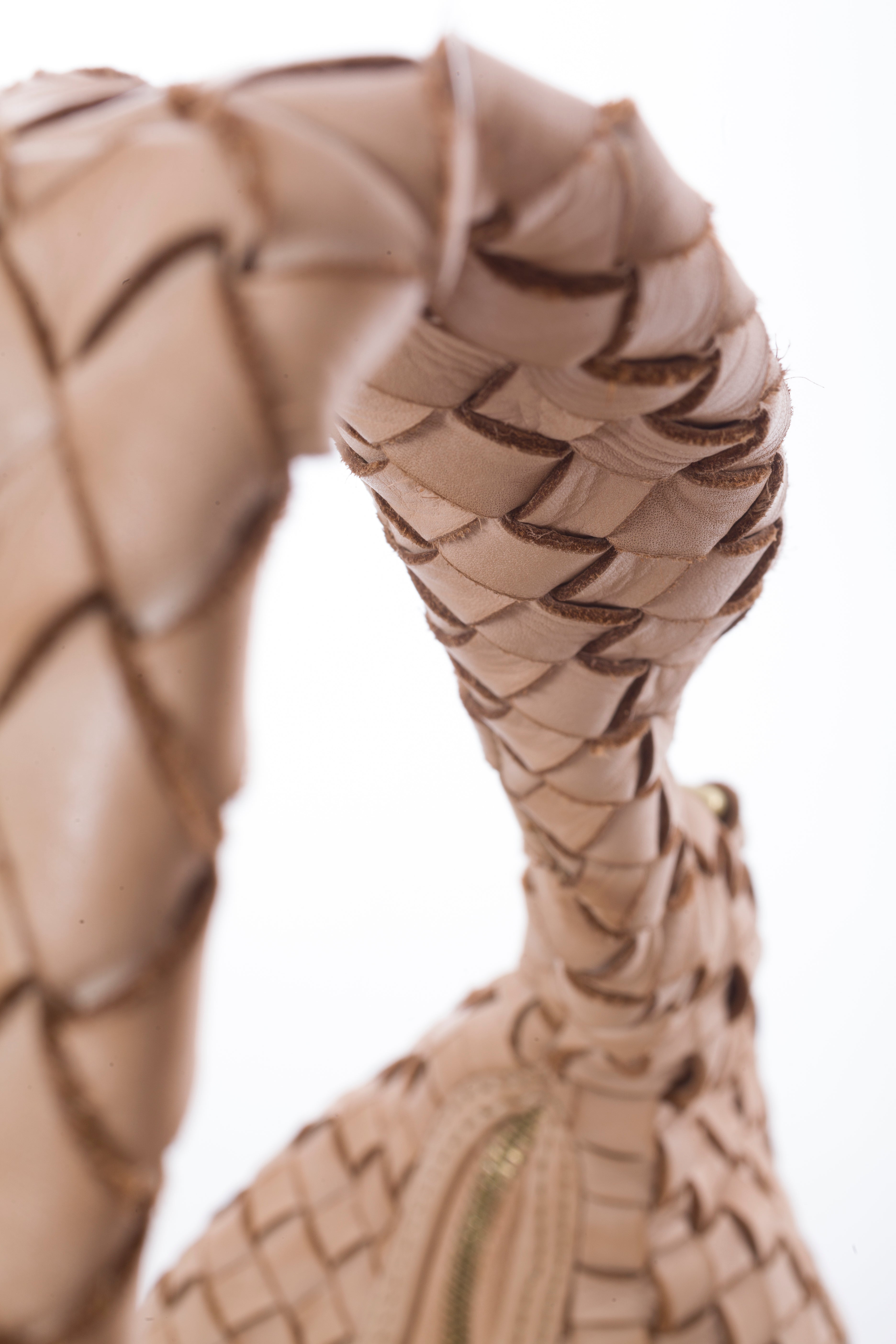 Borsa a spalla vintage da donna realizzata in morbida pelle di vitello intrecciata a mano, lavata e tinta in capo, Made in Italy. Chiusura con zip, tasche interne e tasca con zip, tracolla regolabile.